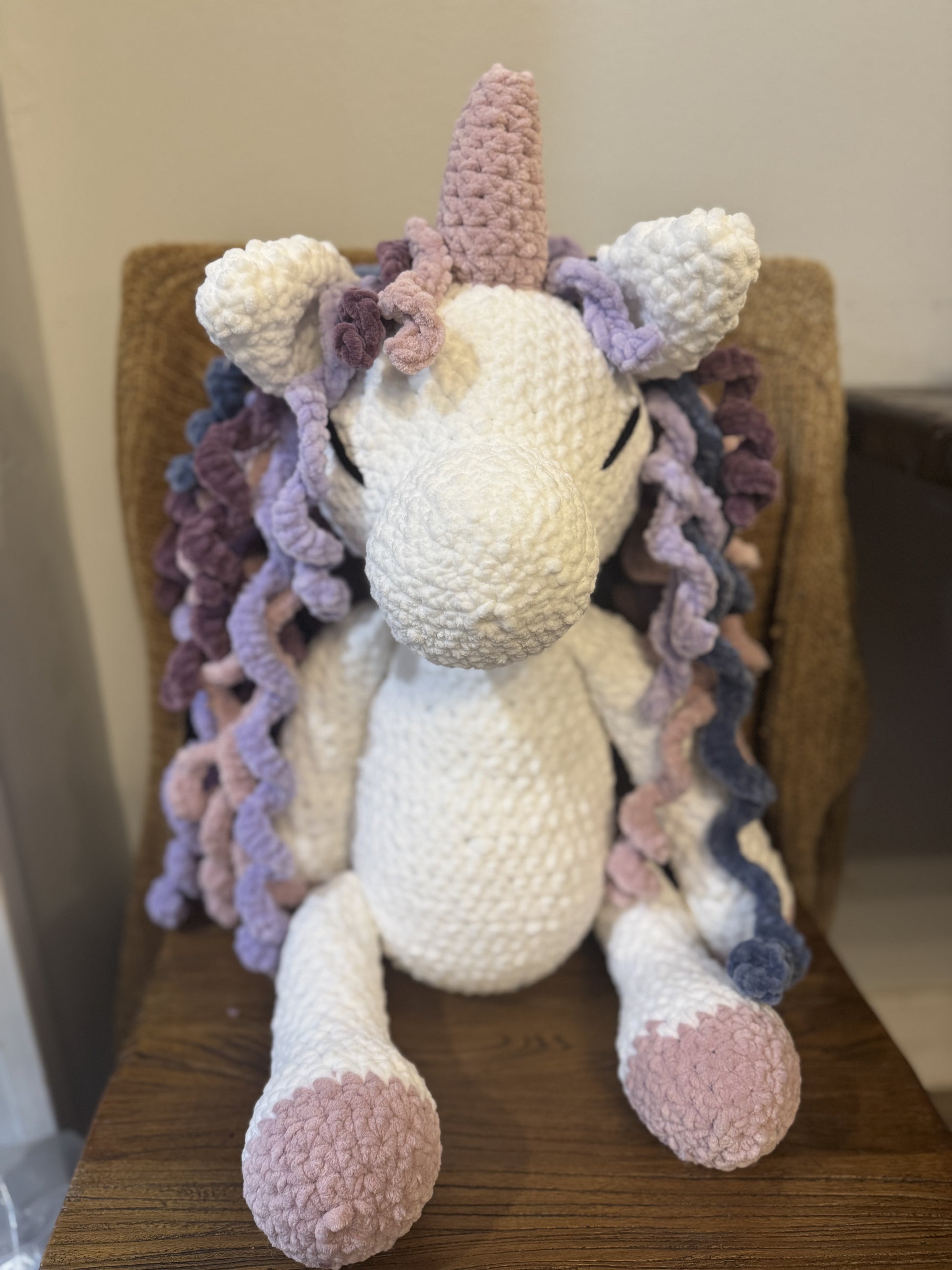 Handmade crochet unicorn! This unicorn was 100% crocheted by me! The colors for the horn, hooves, and hair can all be altered based on preference!